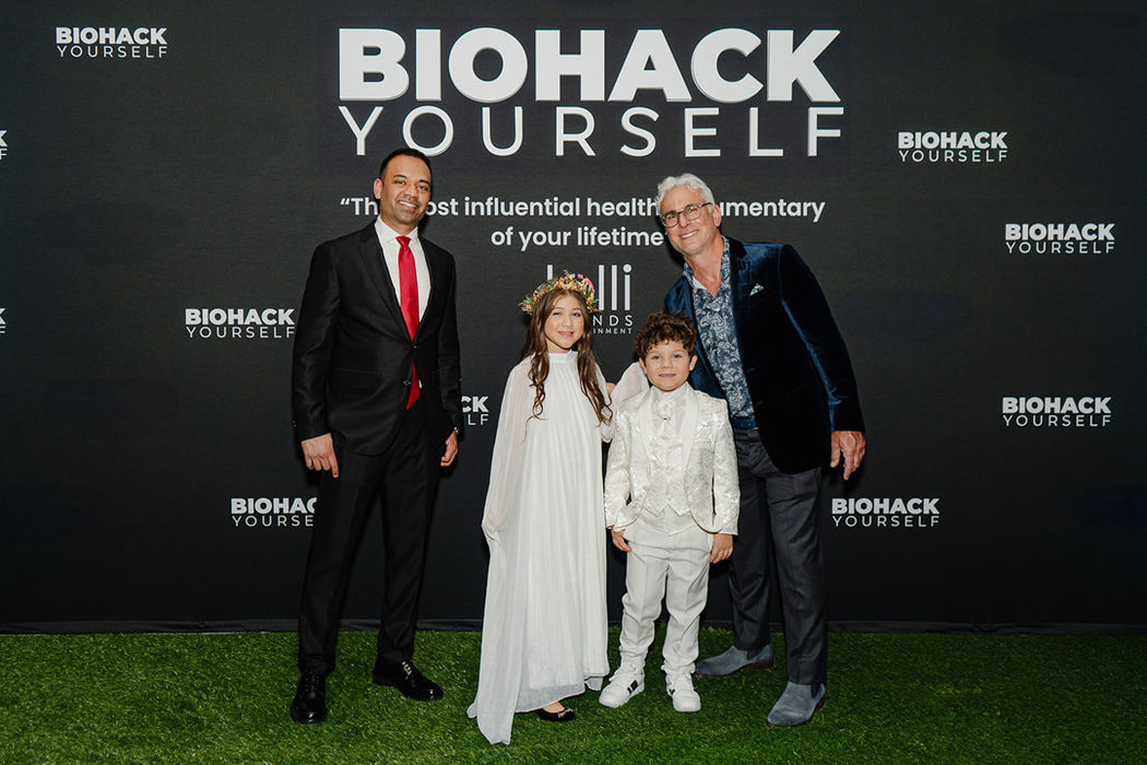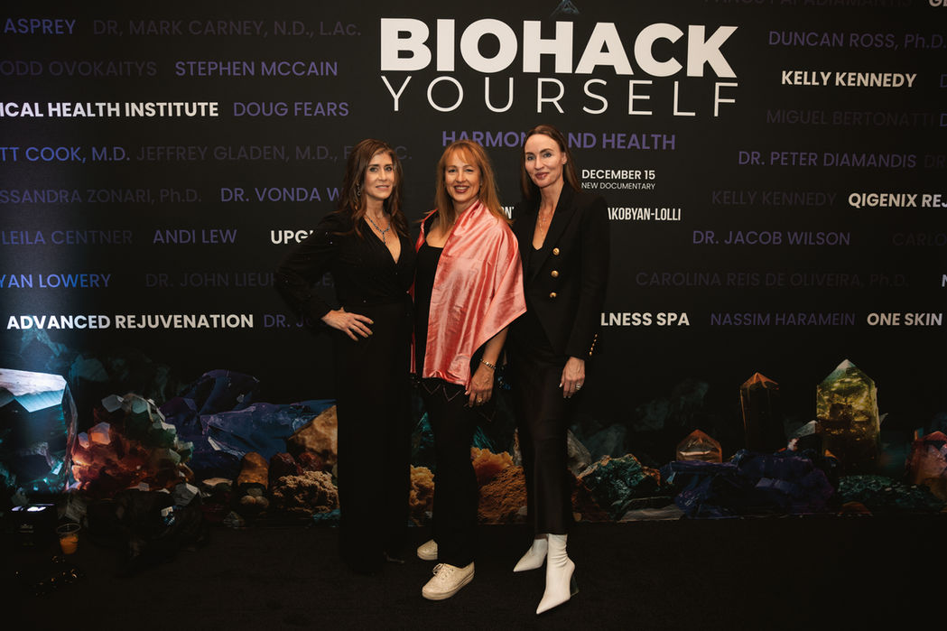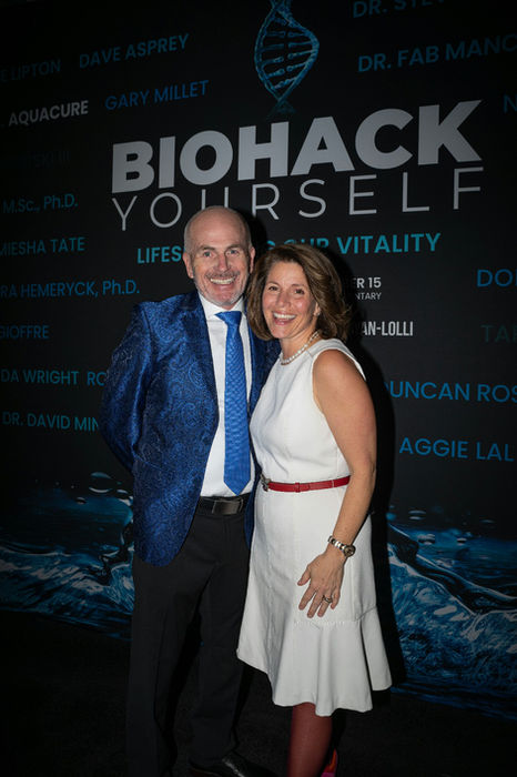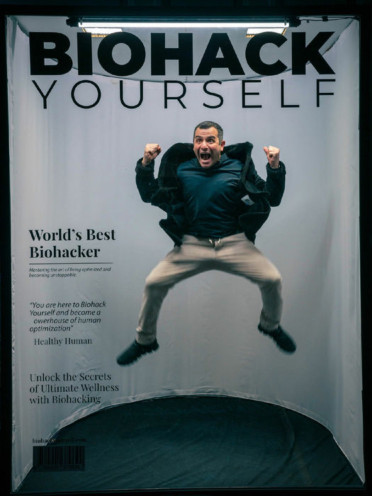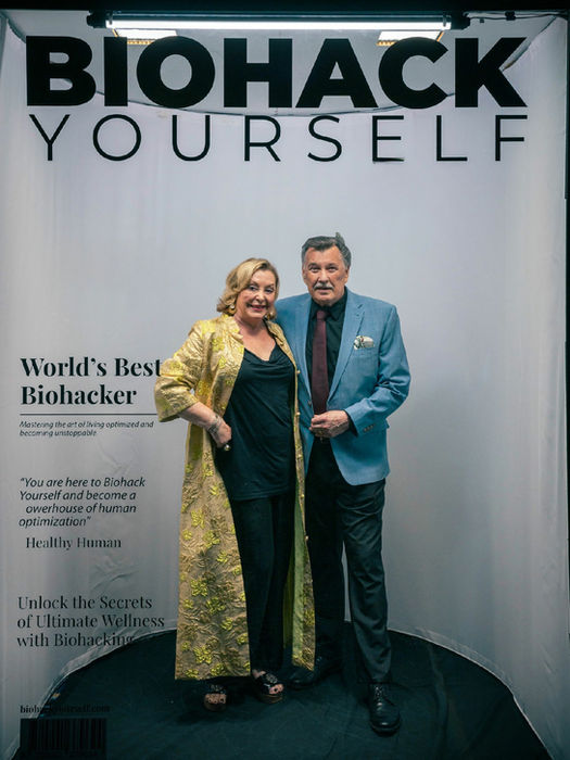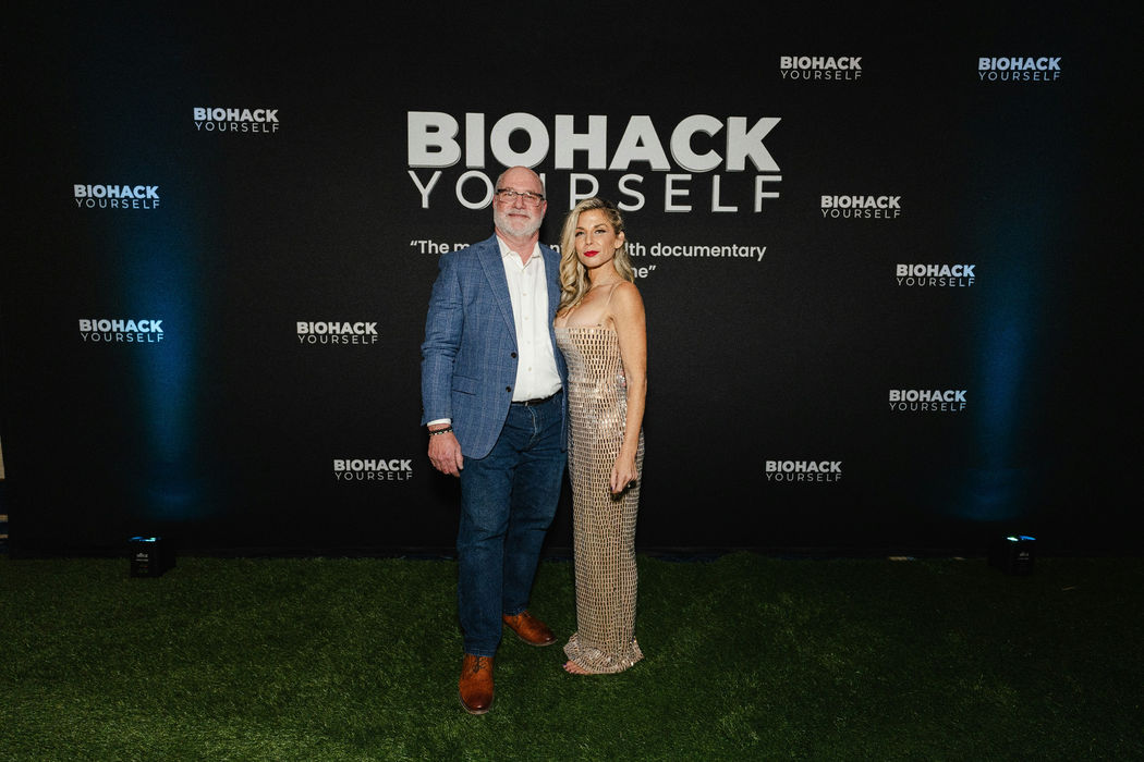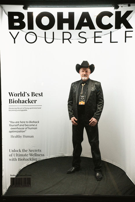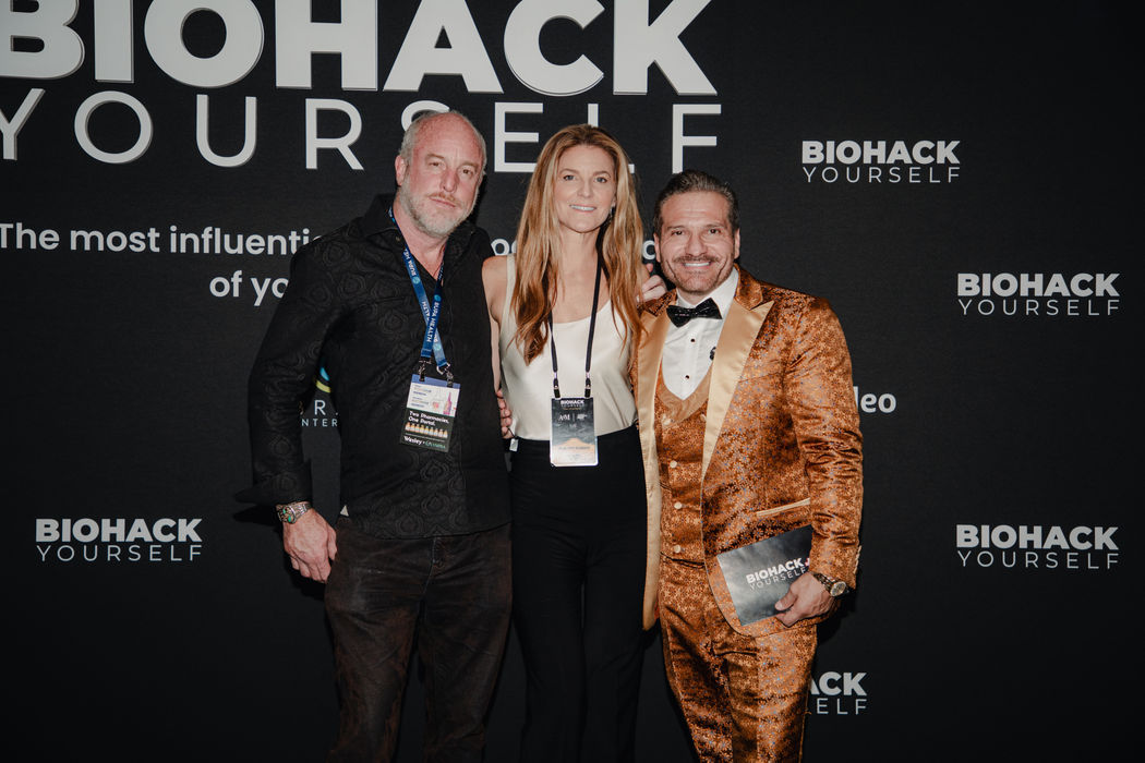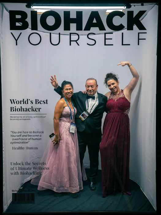 The backdrop, the lighting setup, the interview hosts, the camera team, all provided by Biohack Yourself Media.