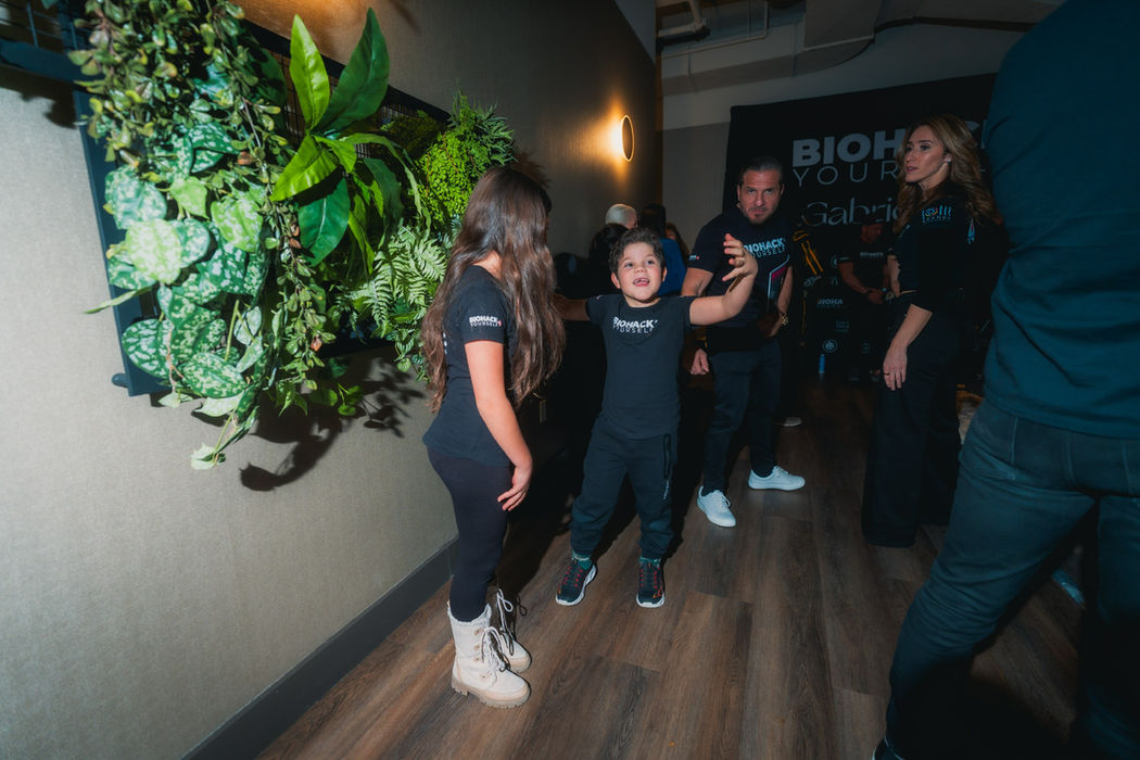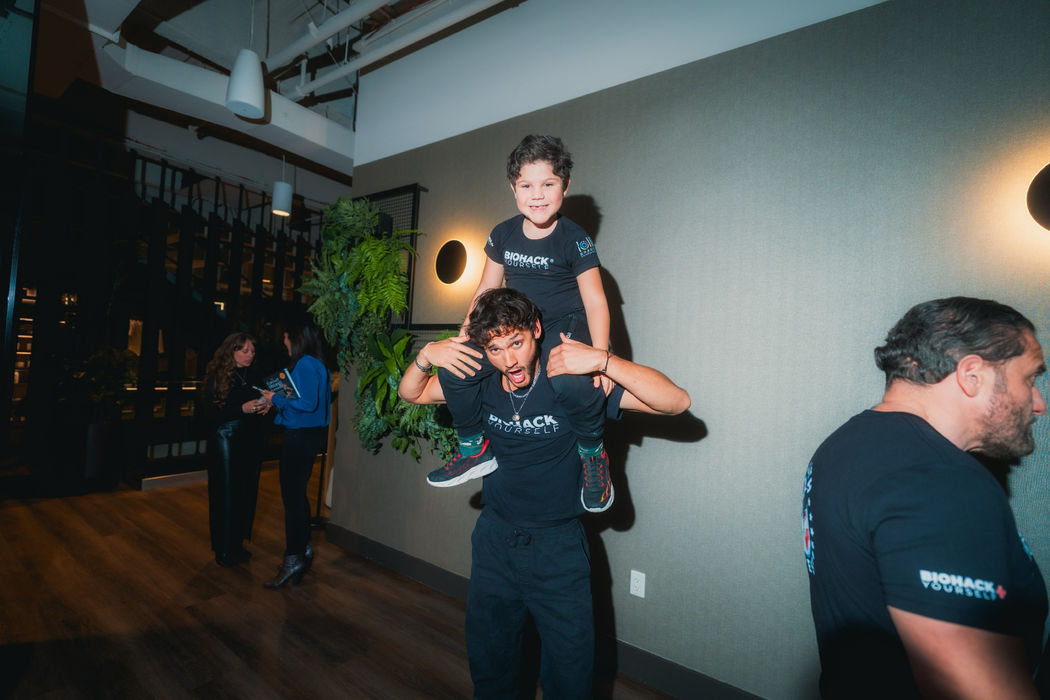 The backdrop, the lighting setup, the interview hosts, the camera team, all provided by Biohack Yourself Media.