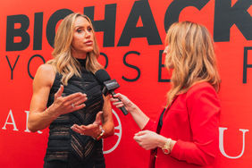 The backdrop, the lighting setup, the interview hosts, the camera team, all provided by Biohack Yourself Media.