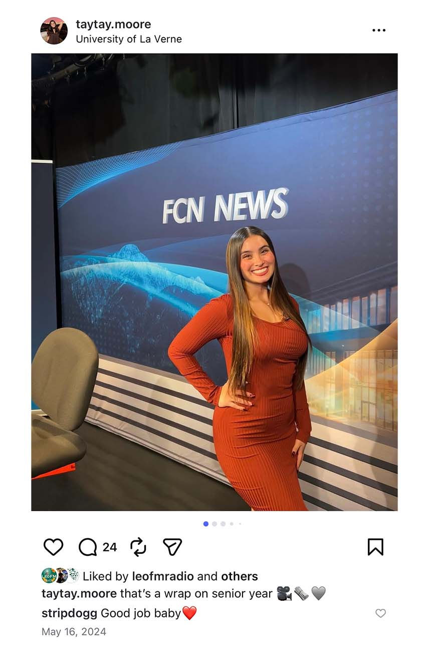 Taylor graduated Summa Cum Laude from the University of La Verne in May 2024 with her Bachelor’s degree in Broadcast Journalism. Throughout her college experience, she served as Editor-in-Chief of the University’s Campus Times Newspaper, as a leading news anchor for La Verne’s local television broadcast Foothill Community News and as an on-air radio personality for 107.9 LeoFm.